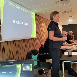 | Formanden beretter | Tilhørerne lytter | Den genvalgte bestyrelse |